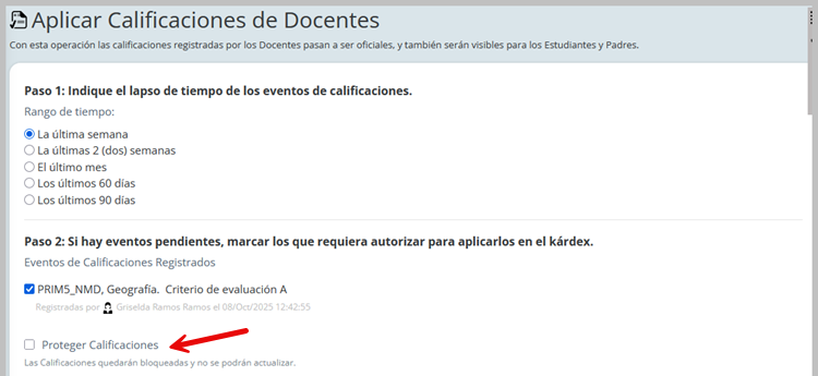 Existe un apartado de protección a las Calificaciones, si deseas bloquearlas por seguridad y no realizar futuras modificaciones, marca la casilla Proteger Calificaciones antes de autorizar.