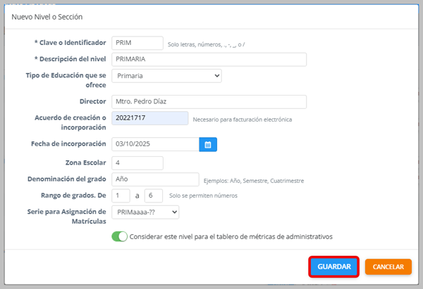 Dato proporcionado por las instancias oficiales y que otorga validez a cada nivel que se imparte. |