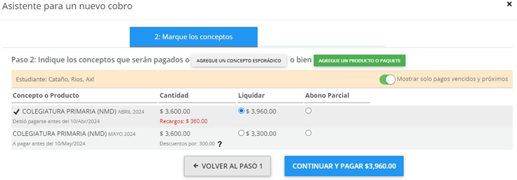 Posterior a la selección de ¿Quién realiza el Pago? Debe Marcar los Conceptos respectivos: